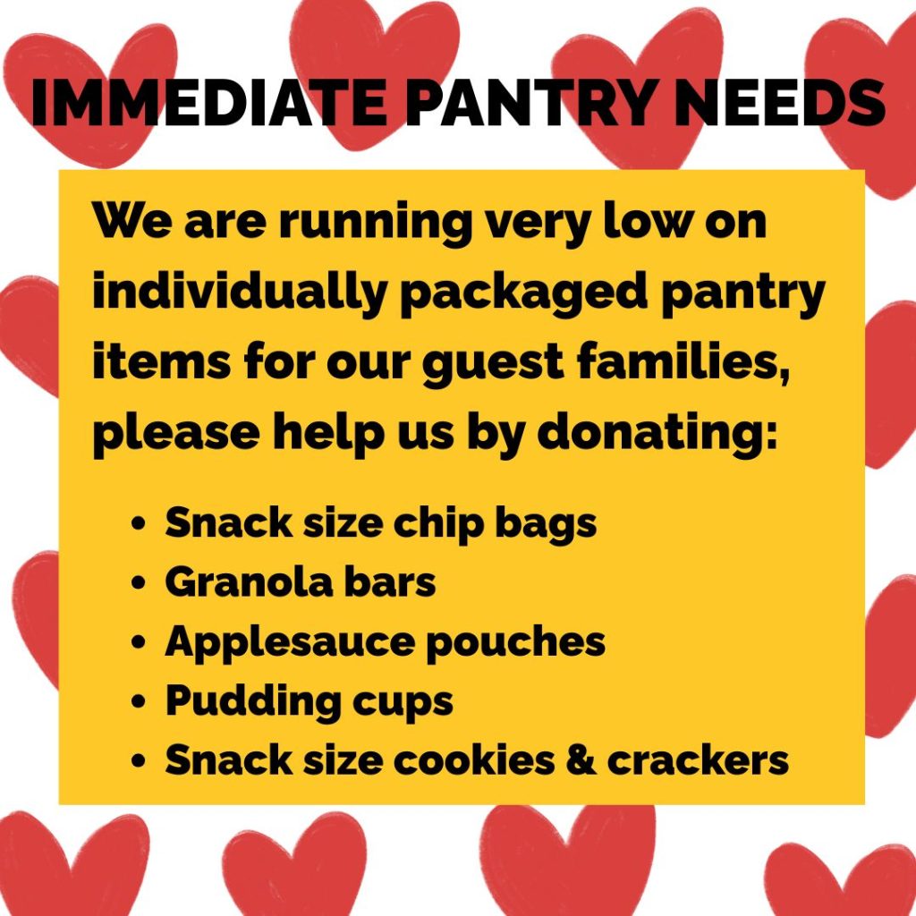Each year, nearly 1,000 family members stay with us. With so many guests to serve, there is a high demand for pantry staples and everyday household items.