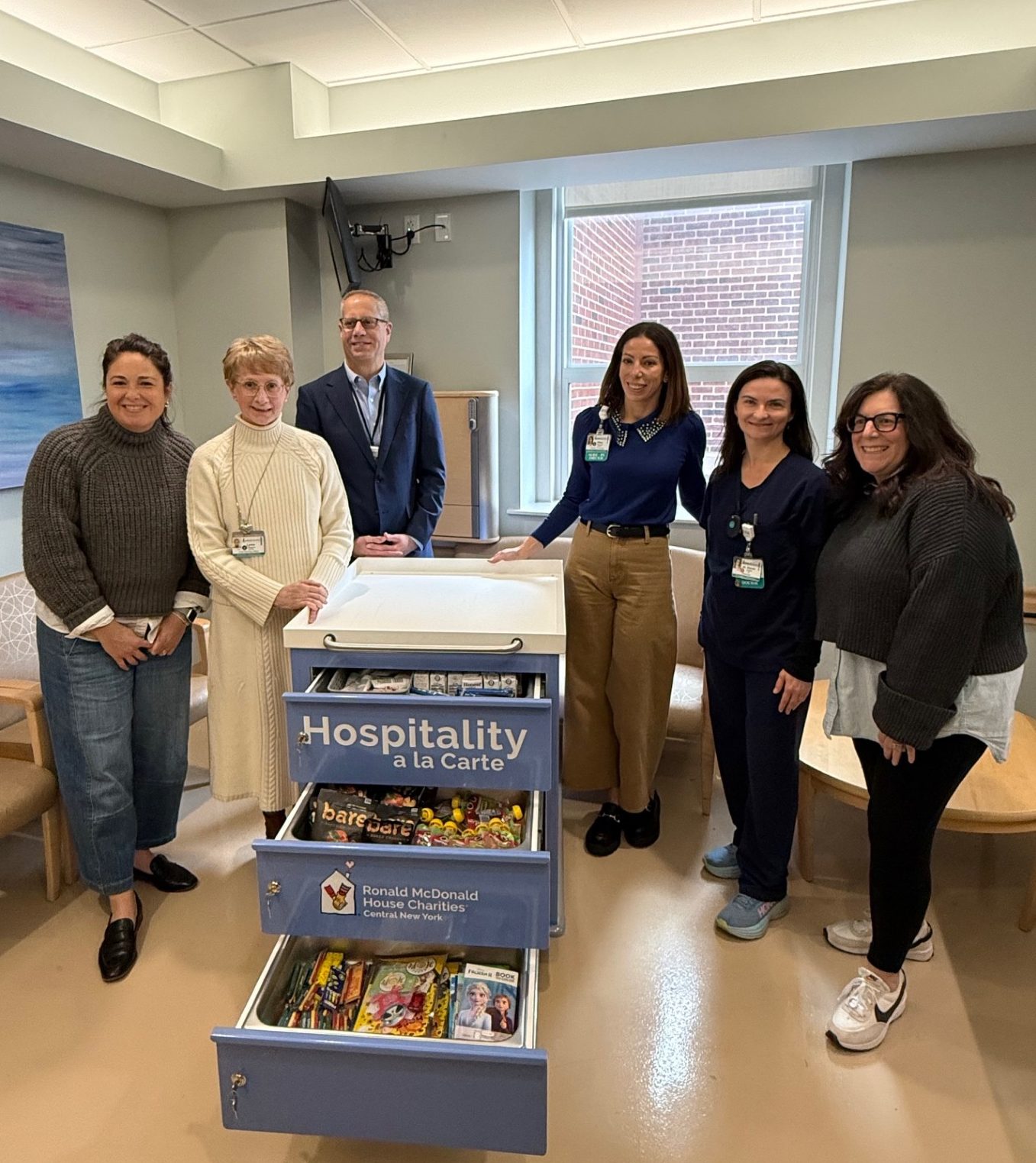 RMHC of CNY launched its Hospitality Cart program in February 2025, effectively expanding its services and extending its reach beyond the CNY Ronald McDonald House. The ER cart is the second Hospitality Cart placed at Crouse Hospital as part of the program. RMHC of CNY’s first cart travels through the Walter R.G. Baker Neonatal Intensive Care Unit, the Kienzle Family Maternity Center and the Pediatric Recovery Care Center and visits hospital-affiliated clinics, including Pediatric Cardiology Associates and Pediatric Urology.